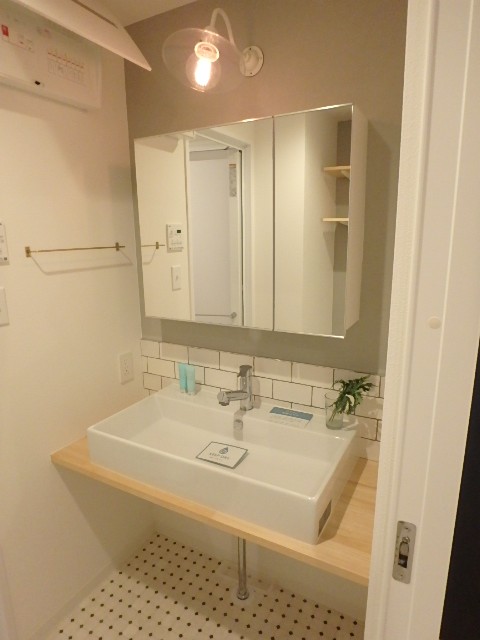 明るく清潔感のある洗面所で毎日の身だしなみを整えるのが楽しくなりそうですね!