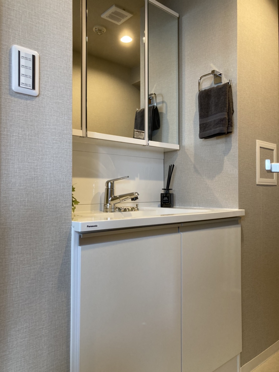 白を基調とした清潔感のある洗面所で