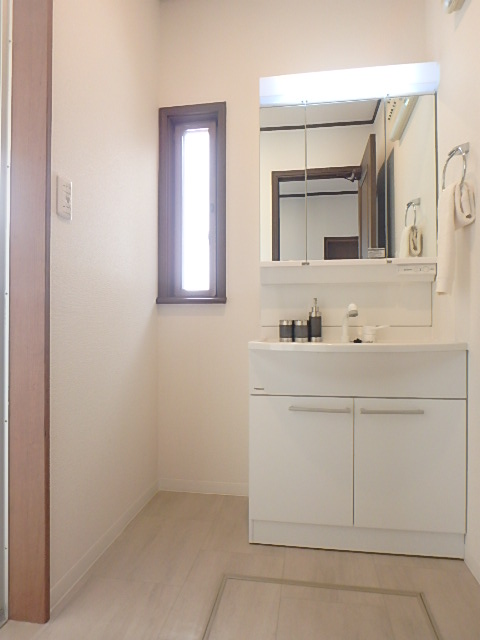 明るくスペース十分の洗面所です↑