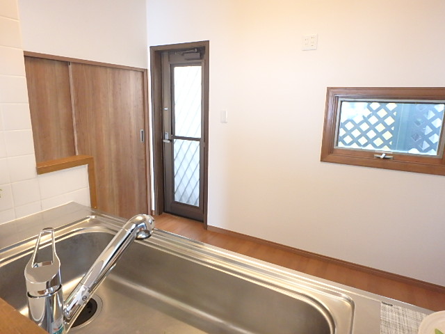 キッチンには勝手口が付いているのでゴミを室内に貯めなくても大丈夫です↑