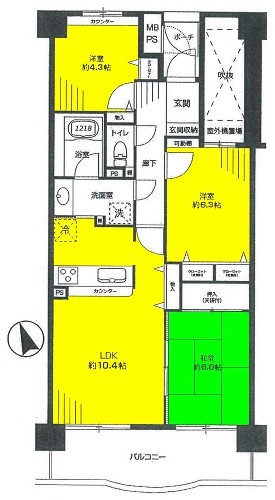 | 専有面積 | 69.15m² | バルコニー面積 | 11.43m²/南側 |