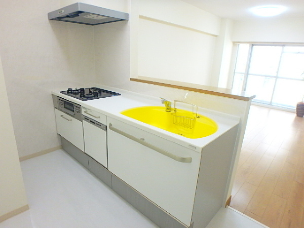 水回りがお部屋の中央に配置された振り分けタイプのお部屋で使い勝手良好(^^♪奥様の家事動線が楽々の2WAYキッチンで無駄な動きがなく快適に家事をこなせますね!前面に高い建物がないので、お部屋からの眺望がとっても開放的ですよ~(’ω’)ノ