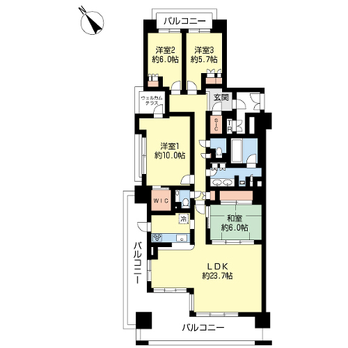 | 専有面積 | 121.67m² | バルコニー面積 | 40.03m²/南西側 |