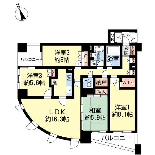 | 専有面積 | 94.79m² | バルコニー面積 | 11.75m²/南側 |