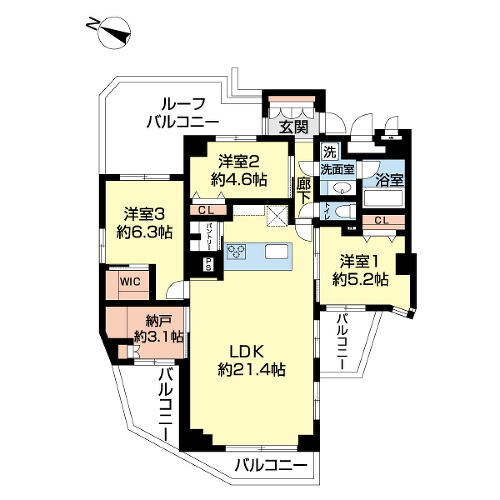 LDKは広々21.4帖で家具の配置にも困りませんね。